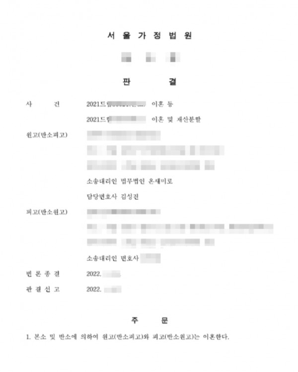 의뢰인과 상대방은 이혼의사는 일치하였고 1년간 별거를 하였습니다. 의뢰인은 상대방에게 재산분할을 요구하였으나 상대방은 재산을 자녀에게 증여하였고 본인 명의 재산만 분할대상이라며 의뢰인에게 분할할 재산이 거의 없다고 주장하였습니다. 재판부는 상의 없이 자녀에게 증여한 재산도 상대방의 재산으로 간주하여 의뢰인에게 재산분할금을 지급하라고 판결하였습니다.