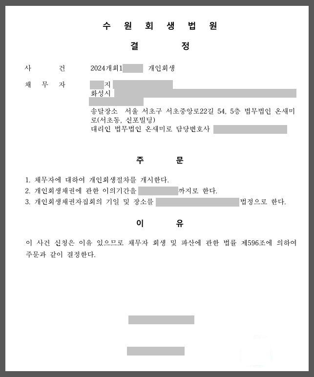 - 의뢰인 : **지 [수원회생법원 2024개회 1*****]